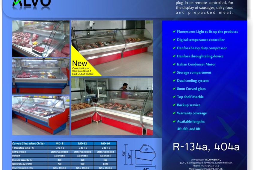 Meat Prep Table, Meat Shop Equipment, Vertical Meat Display Chiller in Pakistan, Alvo Vertical Meat Display Chiller Ameer Chowk, College Road, Lahore, Pakistan