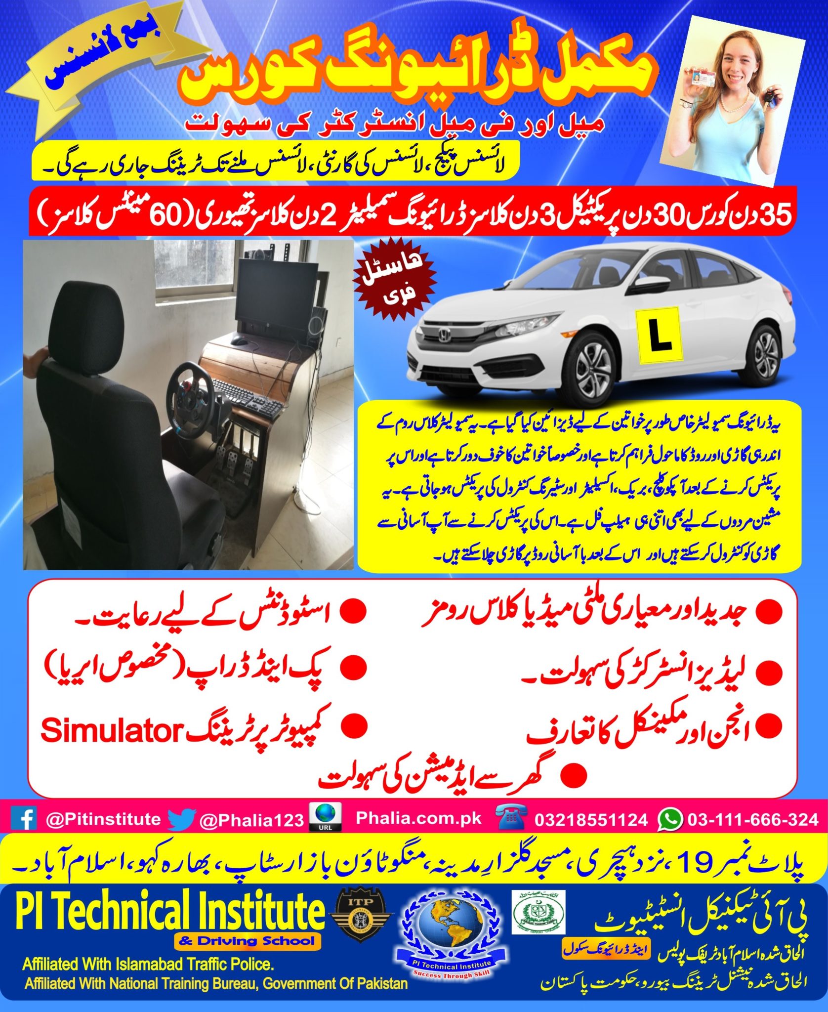 Premium Driving Package PI Technical Institute & Driving School, Islamabad, Pakistan