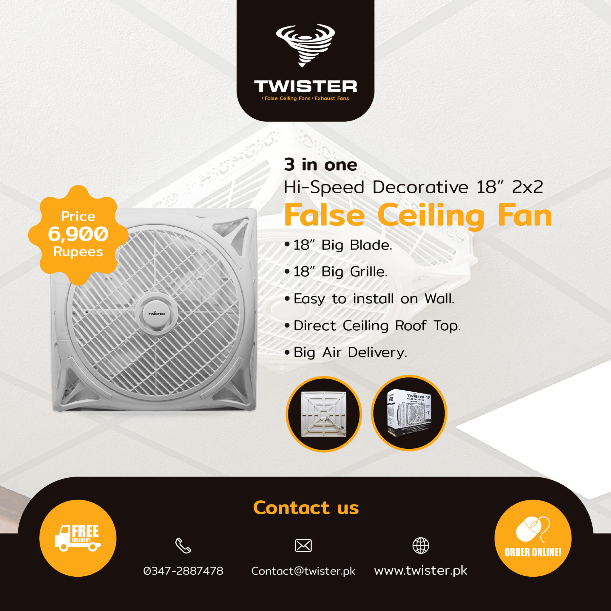 Twister Hi-Speed False Ceiling Fan In Pakistan